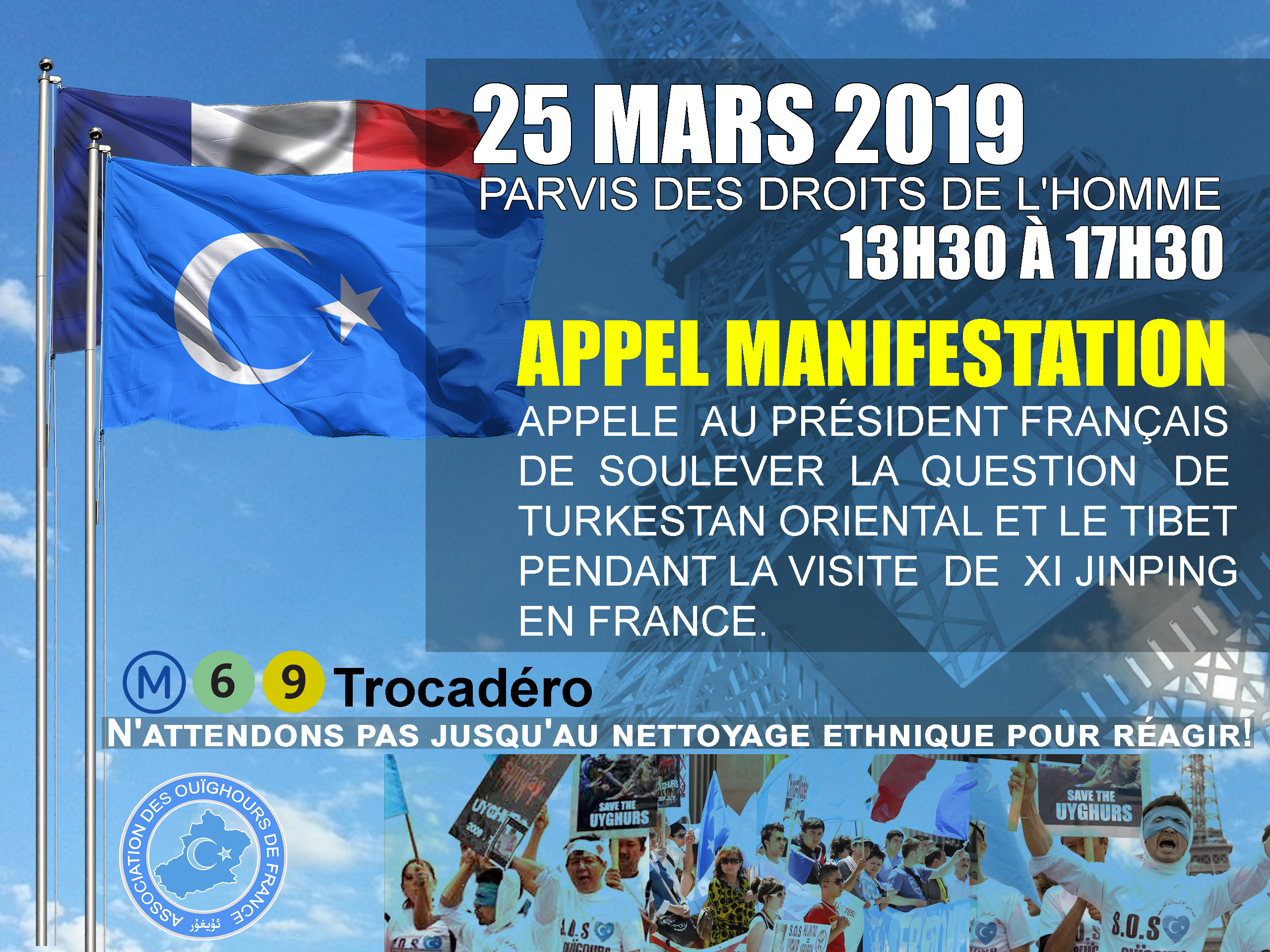 Appel manifestation à l'occasion de visite président chinoise Xi Jinping en France.